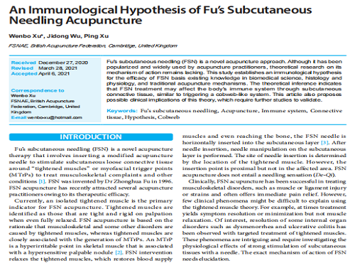AN IMMUNOLOGICAL HYPOTHESIS OF FU’S SUBCUTANEOUS